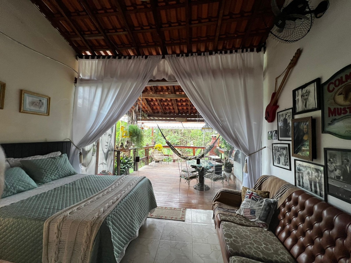 Zrelaksuj się w tej prywatnej, spokojnej i stylowej przestrzeni. Wnętrze inspirowane wspomnieniami z dzieciństwa, a jednocześnie pełne rustykalnych i gustownych detali rzemieślniczych. Należy do posiadłości Chácara Nascimento i został stworzony z myśleć o gościach (parach), którzy cenią sobie życie na wsi lub w rodzinie (dzieci i/lub małe psy) i z możliwością rozszerzenia doświadczenia na kilka innych osób. (pobieramy dodatkową opłatę za gości w ewentualnym dodatkowym pokoju)