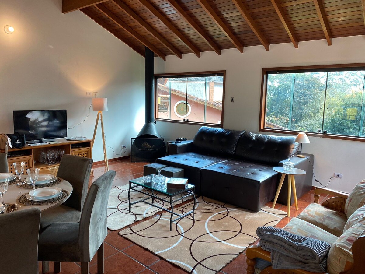 Lindo chalé aconchegante situado dentro de CONDOMÍNIO FECHADO na cidade de Mairiporã/SP. A 50 minutos capital. Conta com uma linda vista das copas das árvores onde você poderá ouvir o som do riacho que corta a propriedade, desconectando-se do mundo exterior ao som de inúmeros pássaros e animais nativos que visitam a região. Para quem tem filhos de quatro patas: pode ficar tranquilo, pois o local é cercado e fechado por alambrado😊