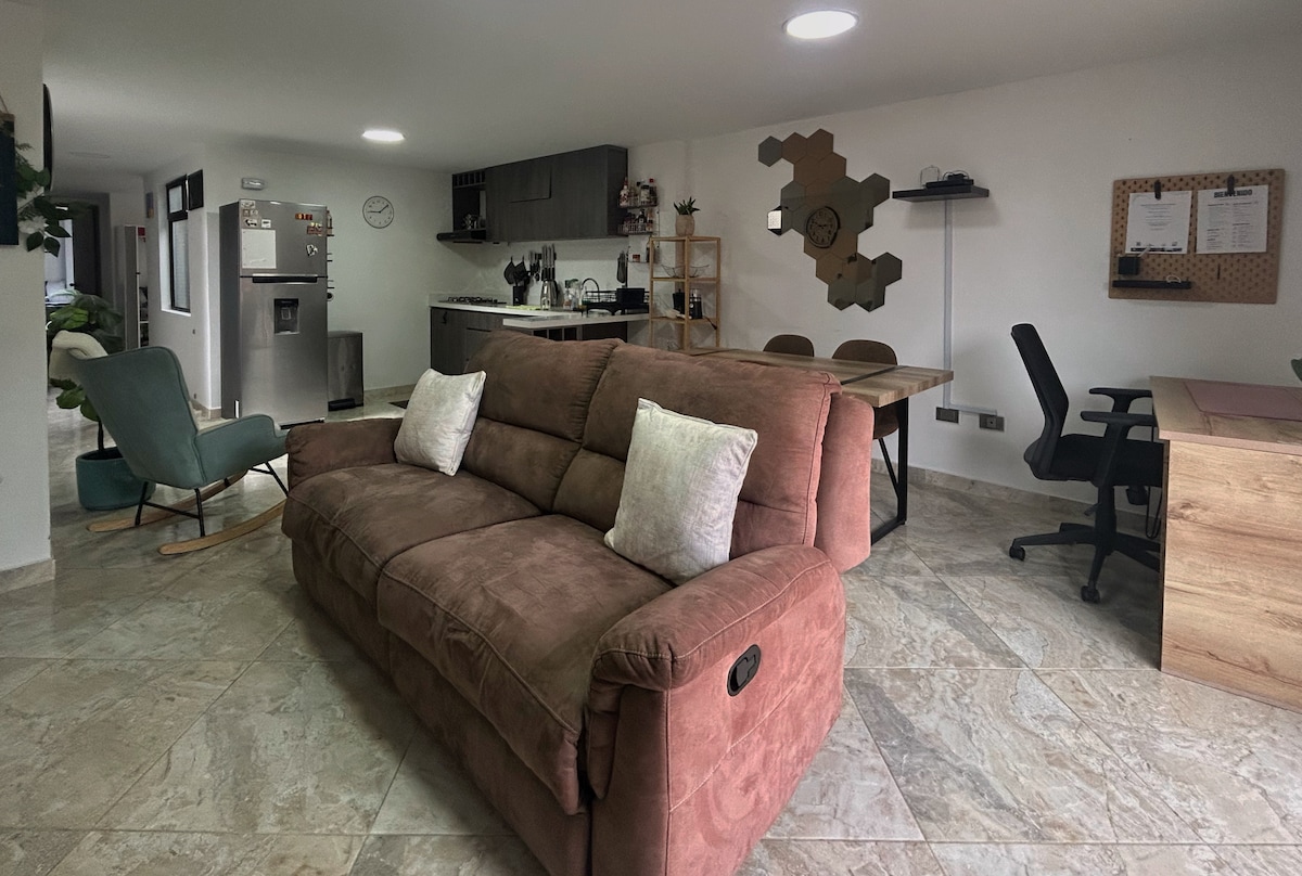 Zanocuj w pełnym naturalnego światła, nowoczesnym apartamencie na drugim piętrze w Medellín. Położony zaledwie 15 minut od najważniejszych atrakcji, życia nocnego i dzielnic biznesowych. Położony w tradycyjnej dzielnicy z lokalnym urokiem, kilka kroków od centrum handlowego Arkadia, restauracji, barów, supermarketów i usług zdrowotnych. Lokalny park oddalony o dwie przecznice jest idealny na treningi lub relaks. Idealne na krótkie lub długie pobyty. Szybkie Wi-Fi, telewizor Smart TV i łatwe samodzielne zameldowanie zapewniają bezproblemowy pobyt w Medellín. Zarezerwuj!