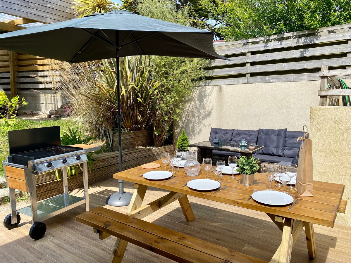 Charmante maisonnette, de 25 m2, tranquille et accueillante, située dans un quartier paisible à deux pas du moulin blanc.Le logement offre une chambre avec un lit de 140, salle de bain et toilettes, espace de rangement, ainsi qu'un salon, salle à manger. La maisonnette possède son propre jardin avec une petite terrasse en bois. Indépendante avec son entrée individuelle et sa place de parking privative, elle offre la sérénité en étant à deux minutes de la plage.