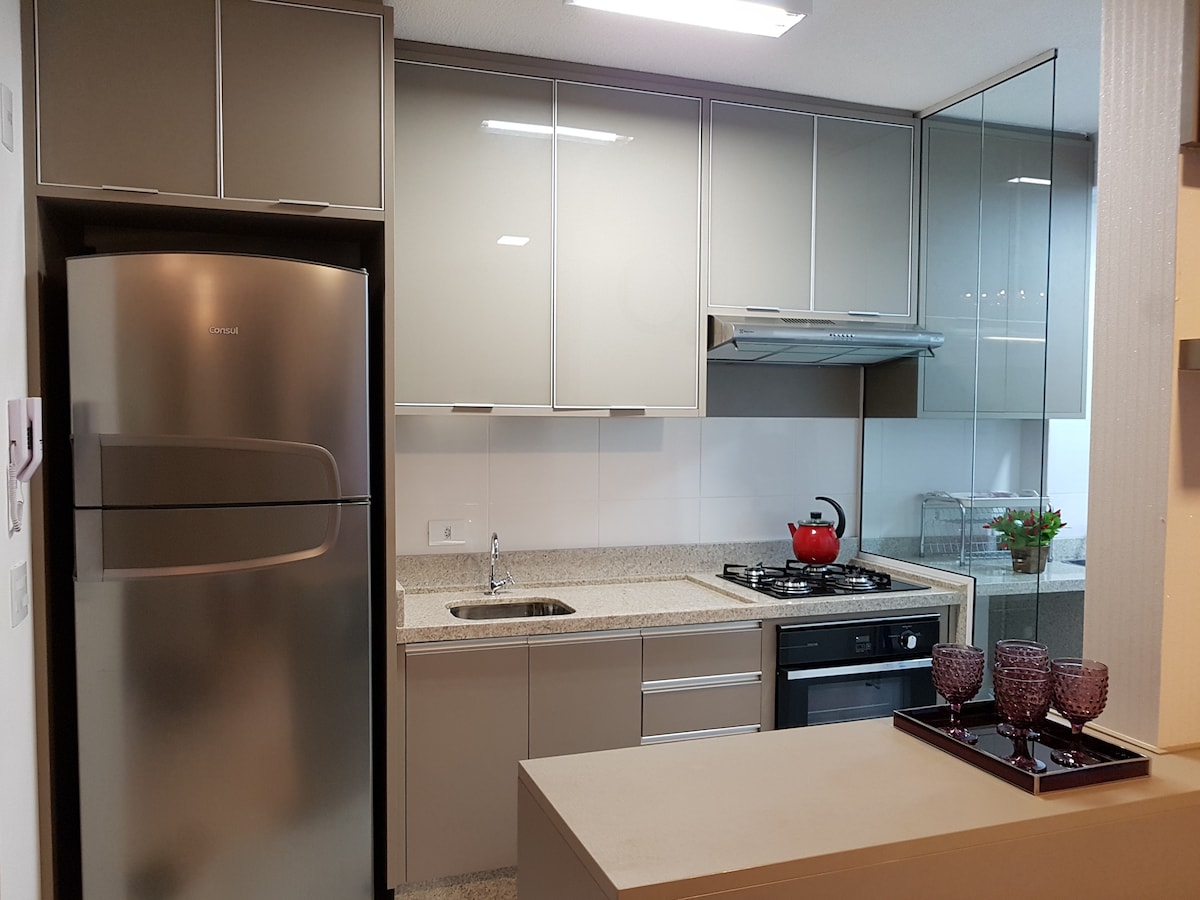 Kto szuka WYRAFINOWANIA, PRZYTULNOŚCI, NOWOCZESNOŚCI, BEZPIECZEŃSTWA, KOMFORTU i PANORAMICZNEGO WIDOKU na Foz do Iguaçu, w tym widoku na rzekę Paraná, elektrownię Itaipu Binacional i Ciudad del Este (PY), ze wspaniałymi zachodami słońca, nie może nie zatrzymać się w Apartamencie VISTA PANORÂMICA. Apartament znajduje się na dachu budynku, z widokiem na wschodnią i zachodnią stronę. 5 nowych klimatyzatorów (cichych). Znajduje się obok Federalnego i Cywilnego Posterunku Policji.