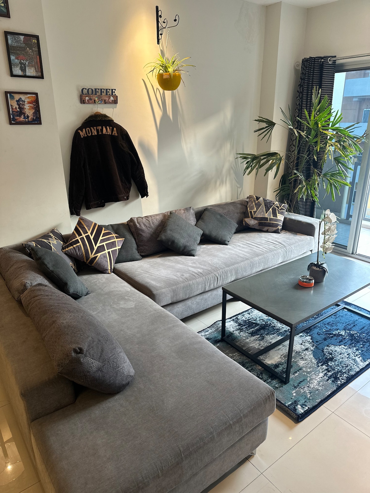 Nasz apartament z 1 sypialnią w DHA Phase 5 to miejsce, w którym miejski szyk spotyka się z niebiańskim stylem. Pomyśl o ścianie w księżycowy wzór, która będzie idealna na nocne selfie, albo o dziele sztuki przedstawiającym stos dolców, które wyraźnie mówią: „to ja jestem tu bohaterem”. Obudź się z widokiem na park z prywatnej huśtawki na balkonie, obejrzyj swoje ulubione programy na 50-calowym telewizorze 4K Smart TV lub ugotuj coś estetycznego w w pełni wyposażonej designerskiej kuchni. Wnętrza? Abstrakcyjne, stylowe i stworzone z myślą o feedzie. Poza tym jesteś tuż obok najgorętszych lokali gastronomicznych w Lahore.