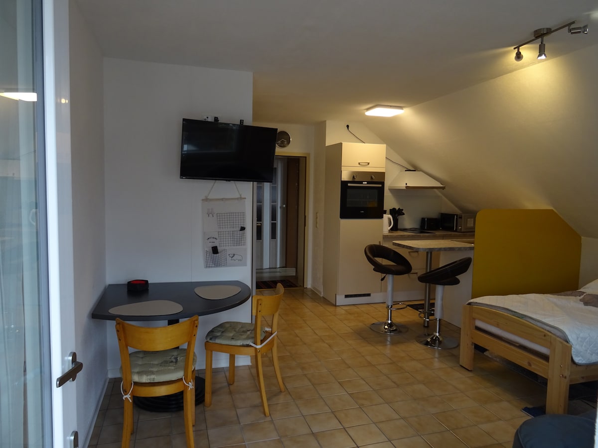 Przytulny apartament w Guldental – rekreacja i rozrywka na łonie natury Udogodnienia: - Jasny i wygodny salon/sypialnia - W pełni wyposażona kuchnia ze zmywarką, piekarnikiem i lodówką, w tym zamrażarką - Wygodna jadalnia - Nowoczesna łazienka z pralką - Wi-Fi i telewizor - Cicha lokalizacja z widokiem na winnice Oferujemy parking w naszym garażu na życzenie dla motocykli i rowerów. Idealne dla miłośników przyrody, miłośników wina i osób szukających relaksu!