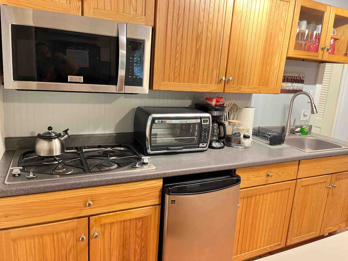 Nasz domek z jedną sypialnią znajduje się na ponad 25 akrach pięknego wybrzeża Florydy. Mimo że jesteśmy odizolowani, mamy wszystkie wygody domu, od kanalizacji i gorącej wody po klimatyzację i Wi-Fi. Nasz telewizor ma Firestick, więc weź ze sobą swoje konta streamingowe i zrelaksuj się wieczorem po tym, jak skończysz piec smores na palenisku na świeżym powietrzu. Rozkładana sofa służy jako miejsce do spania dla 2 osób, które w kilka minut można przekształcić w domek dla 4 osób. Parking nie stanowi problemu, nawet jeśli masz przyczepę.