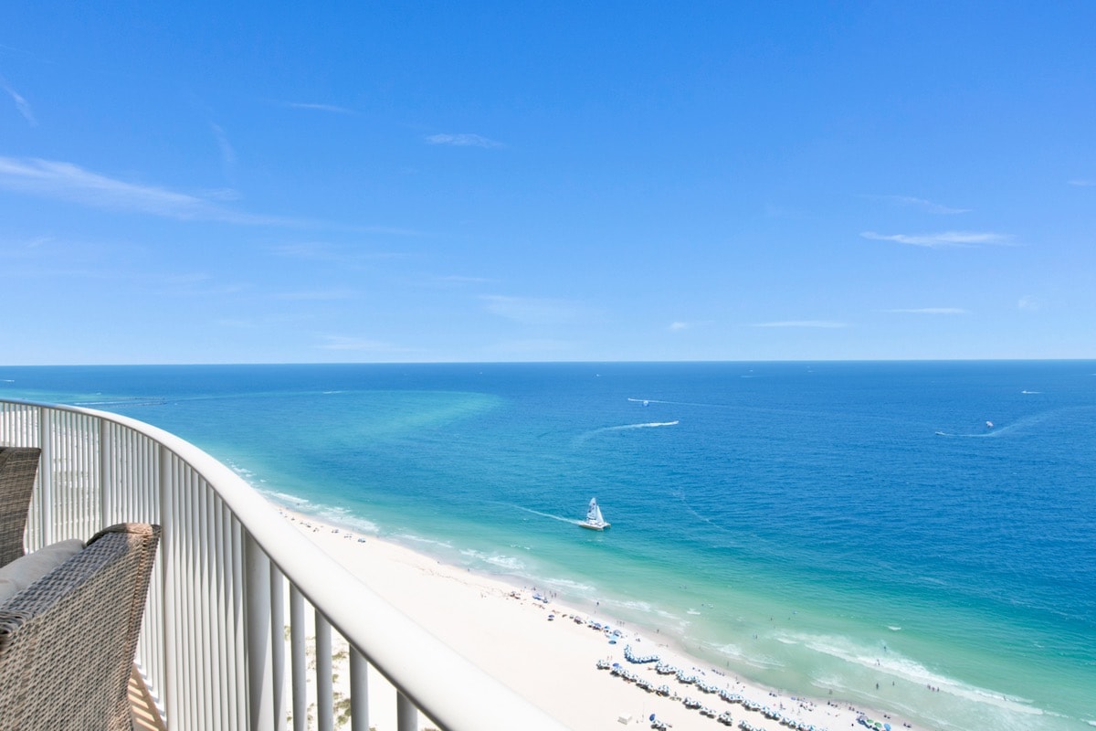 2 sypialnie + pokój z łóżkiem piętrowym ~ Plaża z widokiem, dla 8 osób! • Wspaniały bezpośredni widok na plaże z białym piaskiem w zatoce • Apartament Master King z wanną z hydromasażem, łazienką główną, drugą sypialnią Queen, pokojem z łóżkiem piętrowym • Balkon 8' x 24' na całej powierzchni z wygodnymi meblami ogrodowymi - idealny do podziwiania plaży • Telewizory SMART z płaskim ekranem, nowe podłogi wyłożone płytkami, pełnowymiarowa pralka i suszarka • Plaża, restauracje i nocne życie w zasięgu spaceru • Park na tym samym poziomie co jednostka • Na miejscu
