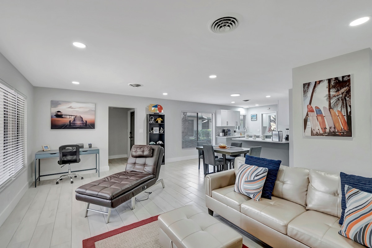 Experience this beautifully appointed vacation retreat just minutes from Pineapple Grove, Atlantic Avenue, and Delray Beach. Enjoy a tranquil private saltwater pool and spa surrounded by lush tropical landscaping, comfortable lounge seating, and a charming patio. The chef’s kitchen overlooks the pool and is fully equipped for true gourmet cooking. Completely remodeled and professionally furnished, this two-bedroom, two-bath home offers the perfect blend of comfort, style, and relaxation.