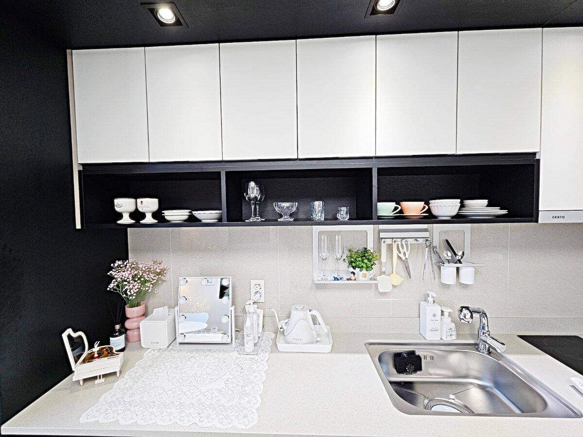 Jest to licencjonowane zakwaterowanie zgodne z Ustawą o kontroli sanitarnej (art. 2 ust. 1 pkt 1) Urzędu Notarialnego w Dzielnicy Jung-gu w❗ Daegu. Kontrola bezpieczeństwa elektrycznego zakończona! ❗Komplet pościeli hotelowej (codziennie wymieniana na świeżą) ❗Smart TV Netflix Bezprzewodowe i przewodowe Wi-Fi ❗Suszarka do ubrań, bidet, zestaw pościeli, klimatyzacja, pralka (dostępny jest detergent do prania). ❗Zestaw pod prysznic (szczoteczka do zębów, pasta do zębów, szampon, balsam, żel do mycia rąk, pianka do mycia twarzy, 2 ręczniki na osobę) ❗Suszarnia, prostownica, grzebień ❗Możliwość łatwego gotowania Kuchenka indukcyjna z 2 palnikami, garnek, patelnia, komplet naczyń, kieliszki do wina, kieliszki do soju, kufle do piwa, kubki, kuchenka mikrofalowa Dostępny jest ekspres do kawy Otwieracz do wina 👌 ❗Nowy budynek Bezpieczeństwo dzięki całodobowemu systemowi alarmowemu Wyposażona w❗ mini apteczkę W pobliżu👣 stacja metra, atrakcje i jedzenie Jest tu różnorodność, więc jest to dobre miejsce na podróż Ponieważ jest to centrum Daegu, łatwo jest się stąd przemieszczać Jest to nowo wybudowany apartament, więc jest bardzo przyjemnie ^_^