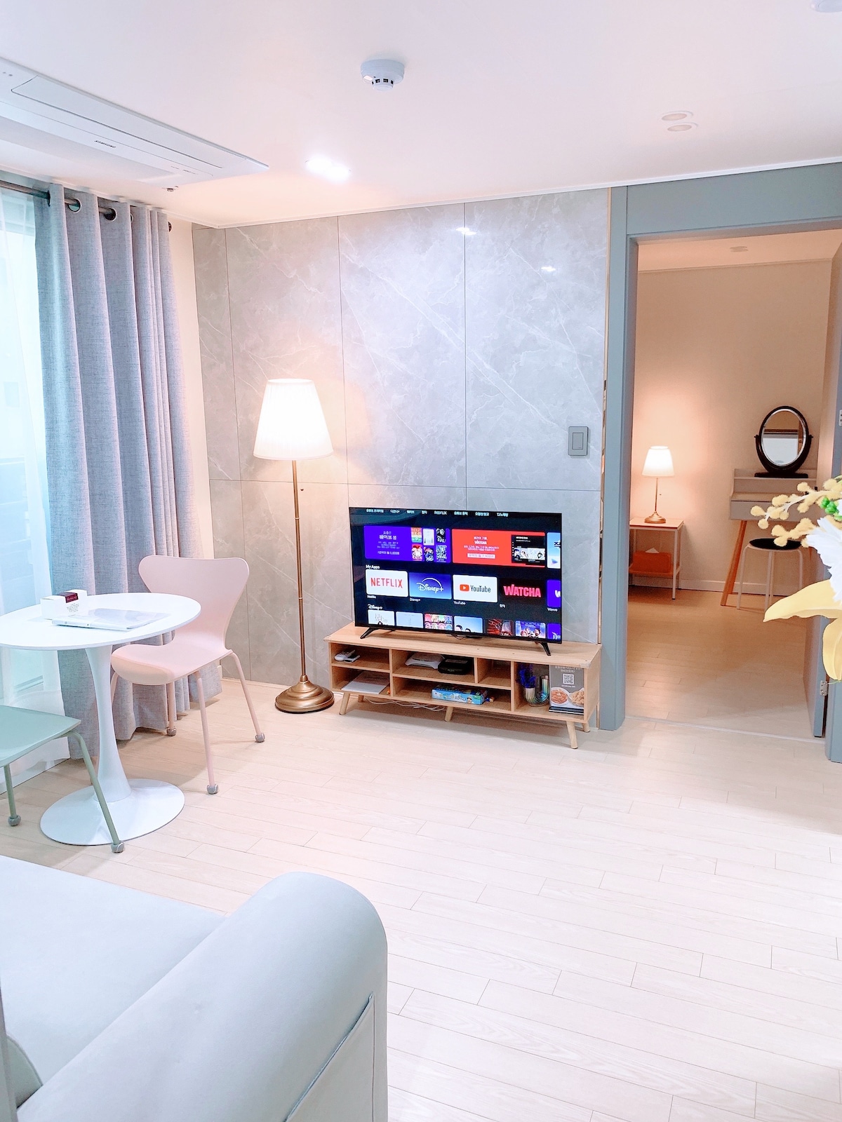 Witaj w Montarze Cieszymy się, że jesteś z nami – ciesz się komfortowym pobytem w Montara! Nasz dom znajduje się w dzielnicy mieszkaniowej i jest idealny dla przyjaciół i rodzin. Może pomieścić do 7 osób. ▪️ 5 minut spacerem od Seoul National Univ. Venture Town Station ▪️ Znajduje się na 4 piętrze nowego apartamentu (z windą) ▪️ 30 minut do stacji Yeouido, Hongdae i Gangnam ▪️ 2 minuty spacerem do całodobowego CVS ▪️ W odległości 5 minut spacerem: Daiso, Olive Young, sklepy spożywcze, restauracje i kawiarnie