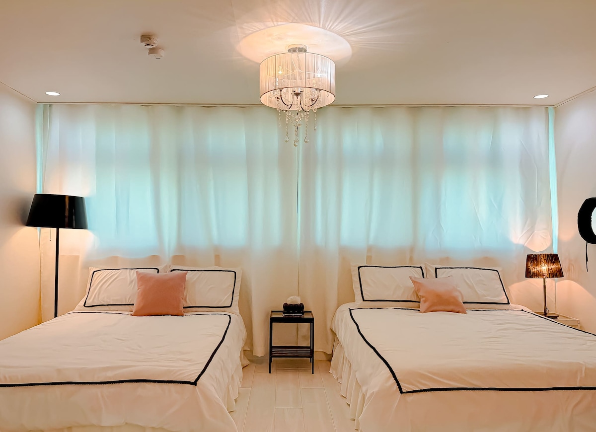 Zrelaksuj się i ciesz się pobytem w samym sercu Myeong-dong, a jednocześnie w ciszy. Czystość jest dla nas najważniejsza w domu Angeliny. Łóżko jest typu queen size, a rozkładana sofa zapewnia komfort podwójnego łóżka bez uszczerbku dla funkcjonalności. Pościel jest za każdym razem sterylizowana w wysokich temperaturach, dzięki czemu możesz spać spokojnie. Na miejscu znajduje się oczyszczacz wody, pralka, a także detergent do prania i płyn do zmiękczania tkanin. Przygotowaliśmy również wszystkie dania, sól, pieprz i olej do gotowania. Prawdopodobnie wszystko, czego potrzebujesz. Przyjdź na chwilę😁