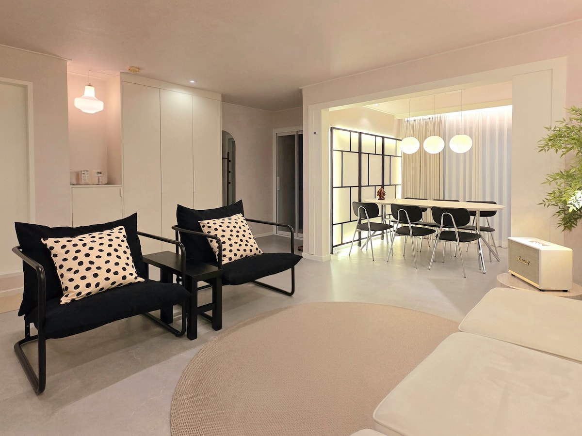 [3 pokoje + 2 łazienki] Przestronny salon i pokój, 5 minut od stacji Sangsu, blisko Hongdae
