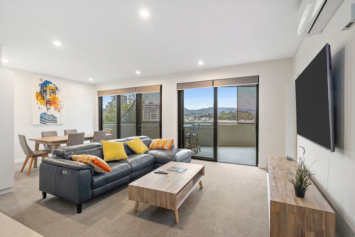 Ciesz się tym nowoczesnym apartamentem z 2 sypialniami położonym w odległości spaceru od głównych sklepów i restauracji Wollongong oraz zaledwie 15 minut spacerem od plaży. Apartament jest urządzony w nowoczesnym stylu industrialnym i posiada przestronny salon/jadalnię na planie otwartym z widokiem na skarpę.