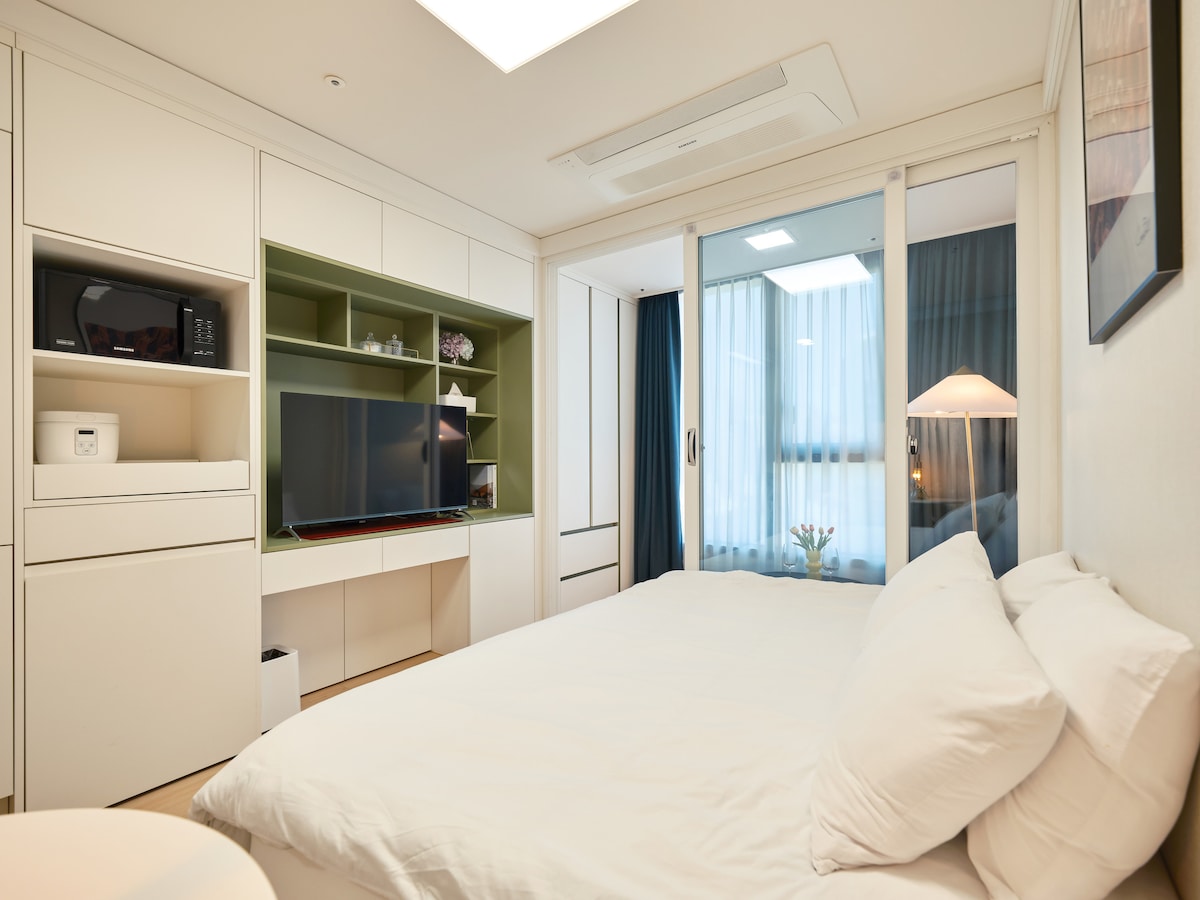 Nowo wybudowana rezydencja w odległości 3 minut od 2 stacji metra * Recepcja, przechowalnia bagażu i salon dla gości: B1F (dostępny personel mówiący po angielsku i chińsku, usługa śniadaniowa (płatna)) * obiekt dla niepalących. grzywna: 150 000 wonów. * Ekspres do kawy i powitalna kapsułka kawy, bidet, oczyszczacz wody pitnej *Wszystko, czego potrzebujesz, jak w domu. *2 gości będą korzystać z jednego łóżka. Jeśli wolisz oddzielne łóżka, poproś o nie z wyprzedzeniem. (płatne) *Dla 3 lub więcej osób rozkładana sofa zostanie ustawiona jako łóżko.