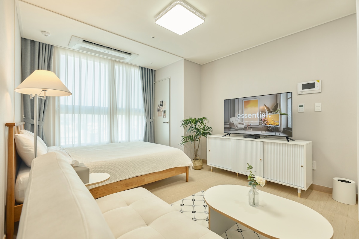 Stay Ondam to starannie przygotowana przestrzeń, która sprawi, że poczujesz się jak w domu, nawet gdy jesteś w podróży. Każda część przestrzeni jest wypełniona detalami, które uwzględniają zarówno praktyczność, jak i relaks, dzięki czemu goście mogą przebywać bez żadnych niedogodności. Mamy nadzieję, że będzie to miejsce, w którym naturalnie gromadzą się cenne chwile podróży. 23 pyeong/76 m² zakwaterowanie ma 3 sypialnie, 4 łóżka typu queen size, 1 topper i oddzielną kuchnię od salonu, więc do 10 osób może z niego korzystać wygodnie. Pościel jest regularnie prana przez profesjonalną firmę i zawsze jest w doskonałym stanie po dokładnym czyszczeniu przed zameldowaniem gościa. Położony w centrum miasta, dom znajduje się bardzo blisko dworca, co ułatwia dojazd na lotnisko i do głównych punktów orientacyjnych. W pobliżu znajdują się duże sklepy spożywcze, centra handlowe, restauracje, kawiarnie i inne udogodnienia, dzięki czemu nadaje się również na dłuższe pobyty. Ponadto możesz cieszyć się kolorowymi wrażeniami zarówno w dzień, jak i w nocy, z tradycyjnego rynku, na którym można poczuć lokalną atmosferę i lokalny nocny targ, który jest bardziej tętniący życiem w nocy.