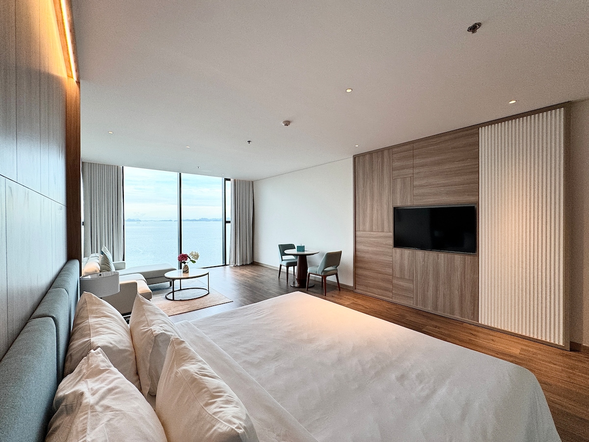 Położone obok InterContinental Halong Bay Resort, to w pełni umeblowane studio o powierzchni 45 metrów kwadratowych z zapierającym dech w piersiach widokiem na zatokę Ha Long z wysokiego piętra. To bardzo wygodne miejsce z pełnym zakresem usług zapewniających relaks, rozrywkę i wyżywienie w ekskluzywnej cenie dla gości zatrzymujących się tutaj, idealnie położone na pięknej plaży. Uwaga: basen, jacuzzi, siłownia, spa i śniadanie są dostępne za dodatkową opłatą – obsługuje je 5-gwiazdkowy hotel À La Carte. Bilety można kupić w recepcji po cenach dla mieszkańców. Mieszkanie z licencją