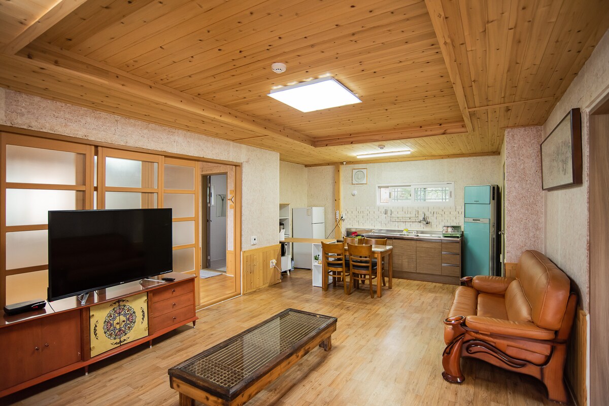 To stuletni dom, który został przebudowany z tradycyjnego domu zbudowanego w 1908 roku. Dobrze zorganizowany ogród i kwiaty lotosu to doskonałe miejsce na wspólny odpoczynek dla całej rodziny. Jest też miejsce, gdzie można wypić herbatę za darmo. Zrelaksuj się w starannie przebudowanym obiekcie. (Pokój 3, Łazienka 2, Klimatyzacja, Ogród Lotus, Bez psów, Zniżka na dłuższy pobyt) ☆ W pobliżu otwieramy małą kawiarnię Hanok i oferujemy gościom 20% zniżki na korzystanie z kawiarni. ☆ To najlepsze miejsce na podróż z Jindo, z wieloma recenzjami i wysokimi ocenami. Mam nadzieję, że spędzisz tu niezapomniane chwile z bliskimi.