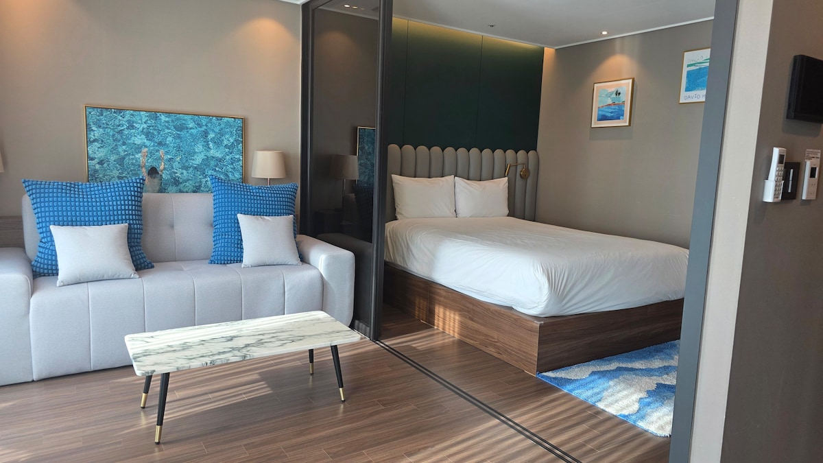 ※ Nasz obiekt jest licencjonowanym obiektem noclegowym Z salonu i sypialni można podziwiać widok na ocean i park wodny Club Dio Asis ^^ Możesz odpocząć, podziwiając Haeundae z wysokiego piętra z widokiem na ocean. W odległości 1 minuty spacerem od plaży Haeundae, w czystym, stylowym pokoju, możesz spędzić czas, regenerując siły. Niedawno odnowiliśmy nasz obiekt, więc wszystkie pościele i wyposażenie są nowe. To piękne, nastrojowe miejsce, w którym zadbano o każdy szczegół, np. o oczyszczacz wody, Netflix, 2 suszarki do włosów. ※ Zdjęcia parku wodnego i widoku na ocean zostały zrobione bezpośrednio z obiektu. ※ Bezpłatny parking w budynku (bardzo dużo miejsca do parkowania, aż do 7 piętra podziemnego)