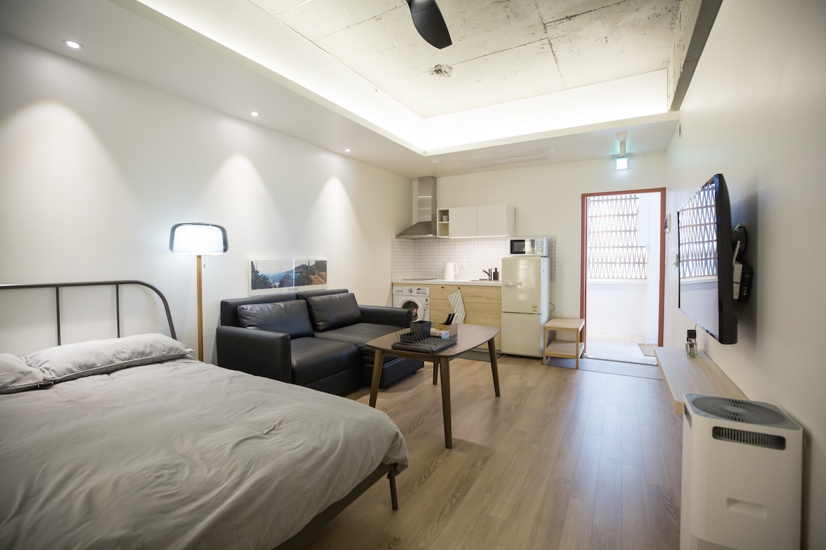 To studio znajduje się w odległości 3 minut spacerem od stacji metra Busan. Znajduje się przy cichej ulicy mieszkalnej, a w pobliżu znajdują się Daiso, McDonald 's, sklepy spożywcze i kawiarnie, więc bardzo wygodnie jest w nim mieszkać. Pokój jest niewielki, ale nadaje się do samodzielnego użytku i jest urządzony uroczo i przytulnie. Jeśli zostaniesz, będziesz zadowolony. Nasz dom znajduje się 3 minuty spacerem od stacji metra Pusan National University. Pokój jest mały dla jednej osoby, ale bardzo przytulny i wygodny. Wygodnie jest mieć w domu stragany, restauracje i sklepy. Szanuję prywatność gości i w razie potrzeby mogę im pomóc. Przyjdź do mojego domu i stwórz dobre wspomnienia.