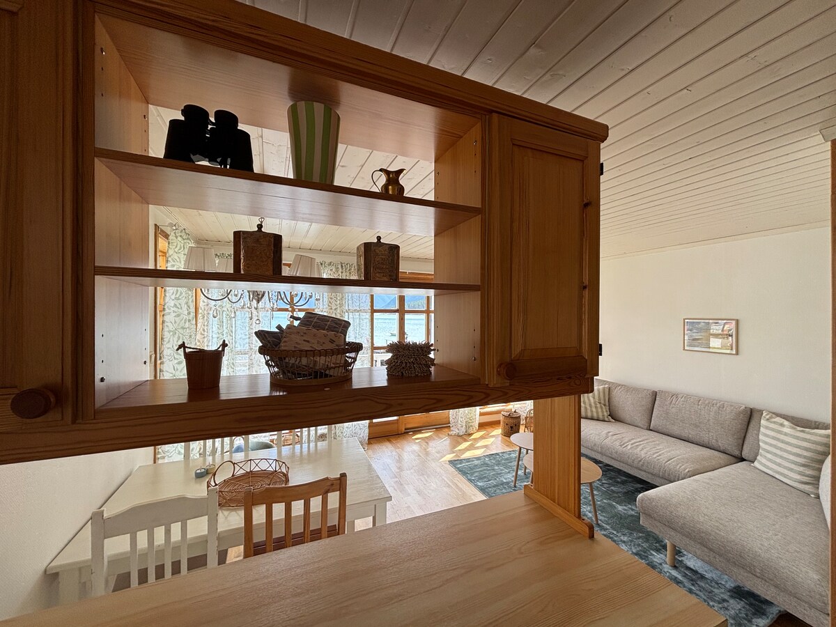 Witamy w Strandheim – idyllicznym i uroczym domu w pięknym Solvorn. Dom znajduje się nad wodą i oferuje komfort, spokój i przyrodę. Możesz tu znaleźć między innymi: • Spektakularne widoki z balkonów domu • Bezpośredni dostęp do plaży • Ogród i taras • Spokojna atmosfera • W odległości spaceru od lokalnej plaży, kawiarni, galerii i promu do kościoła Urnes Stave (UNESCO) Dom posiada w pełni wyposażoną kuchnię, łazienkę z pralką, salon, korytarz i wygodną sypialnię z dwoma łóżkami 1,20 m w każdym pokoju. Dostępny kajak.