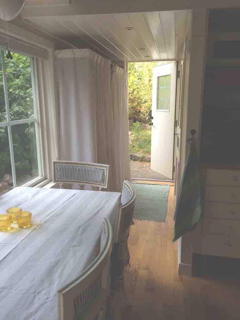 Czy chcesz odkryć Sztokholm i archipelag oraz zatrzymać się w pięknej, spokojnej okolicy? Serdecznie witamy w naszym małym domu o powierzchni 30 m² z w pełni wyposażoną kuchnią i nowoczesną łazienką. Wygodna sofa lub przytulna sypialnia na poddaszu. Zjedz kolację przy stole, wyjdź na zewnątrz i wypij kawę na słonecznym, drewnianym tarasie z widokiem na nasz piękny ogród. Pościel i ręczniki są wliczone w cenę, a nawet kawa/herbata. Lokalny pociąg zabierze Cię do Sztokholmu w zaledwie 18 minut. Nie potrzebujesz samochodu.