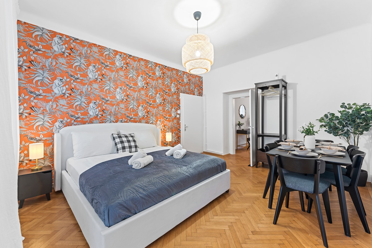 Sisi Cesarzowa Elżbieta z Austrii, lepiej znana jako „Sisi”, jest najpopularniejszym i najbardziej znanym monarchą w historii. Była buntownicza, urocza, wolna i kreatywna, a także znana ze swojej dyscypliny w gimnastyce. Mieszkanie „Sisi” daje poczucie wolności i buntu. Dominują tu jasne i przyjazne kolory. Z niezwykłymi elementami wystroju, śmiałe akcenty przypominają twórczość dawnego monarchy.