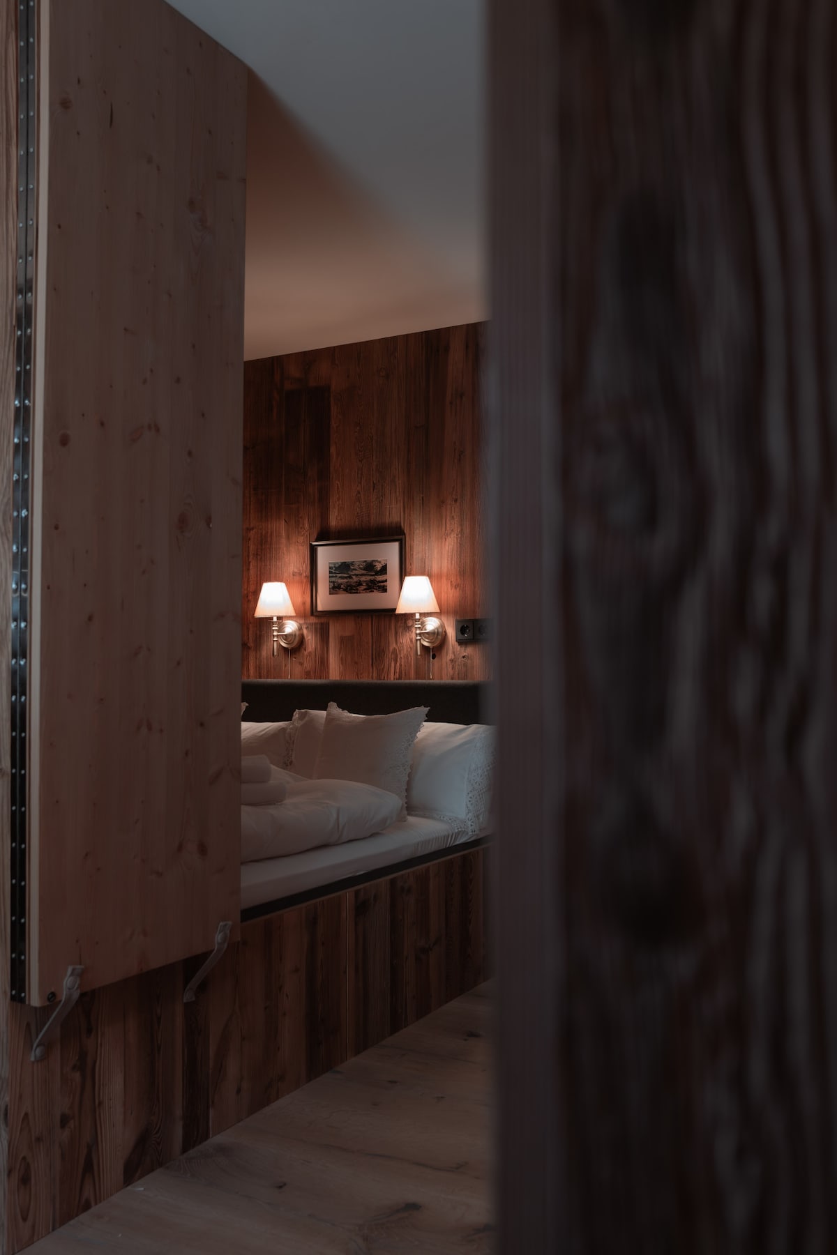 Ten uroczy apartament z tradycyjnym piecem kaflowym znajduje się w alpejskiej górskiej chacie otoczonej starymi drzewami – miejscem, w którym można oddychać, odpoczywać i czuć się jak w domu. Ciepłe drewniane sufity i ściany tworzą przytulną atmosferę pełną rustykalnego uroku. Idealne dla par, małych rodzin lub maksymalnie 4 osób. Przestronne podwójne łóżko w sypialni ma wymiary 240 × 200 cm i oferuje dużo miejsca na relaks. W salonie wygodna sofa (160 × 200 cm) zapewnia dodatkową przestrzeń do spania dla dwóch kolejnych gości