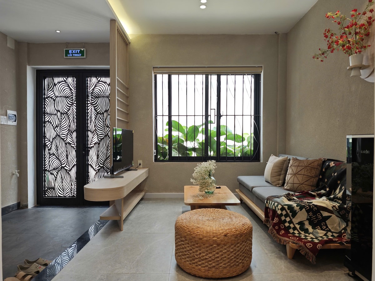 Dom BAMÁ został zaprojektowany w nowoczesnym, minimalistycznym stylu wabi-sabi. Nazwa domu BAMÁ oznacza rodzica w języku wietnamskim, który jest prezentem od syna przebudowanego z dziecięcego domu. Dlatego ciepło i intymność to dwa wspólne doświadczenia podczas pobytu. Ten piękny dom jest w pełni udekorowany 2 dużymi łóżkami typu king-size, chłodnym salonem połączonym z ciepłą kuchnią, przestronnym dachem do grillowania z 3 wystawnymi łazienkami. Położony w samym centrum miasta, 2 minuty do lotniska, 3 minuty do rzeki Han, 7 minut do morza