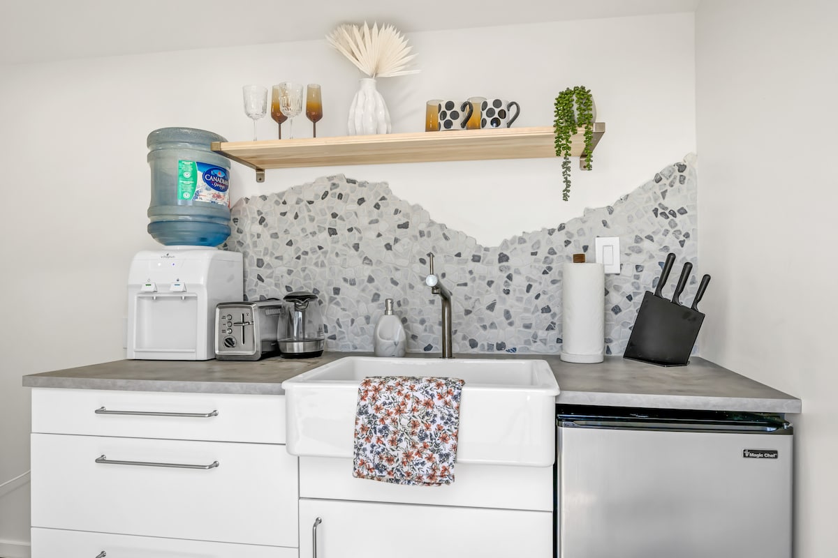 Odpręż się i zrelaksuj w tej spokojnej, stylowej przestrzeni. To mieszkanie w piwnicy w South Bedford oferuje najważniejsze udogodnienia z klasą. Otwarta część wypoczynkowa mieści się między jadalnią a wyposażonym aneksem kuchennym. W sypialni znajduje się wygodne łóżko typu king-size, miejsce do pracy, komoda i szafka nocna. Toaleta jest wyposażona w automatyczne czujniki i energooszczędny mechanizm spłukiwania. Pompa ciepła pomaga utrzymać odpowiednią temperaturę w mieszkaniu przez cały rok.