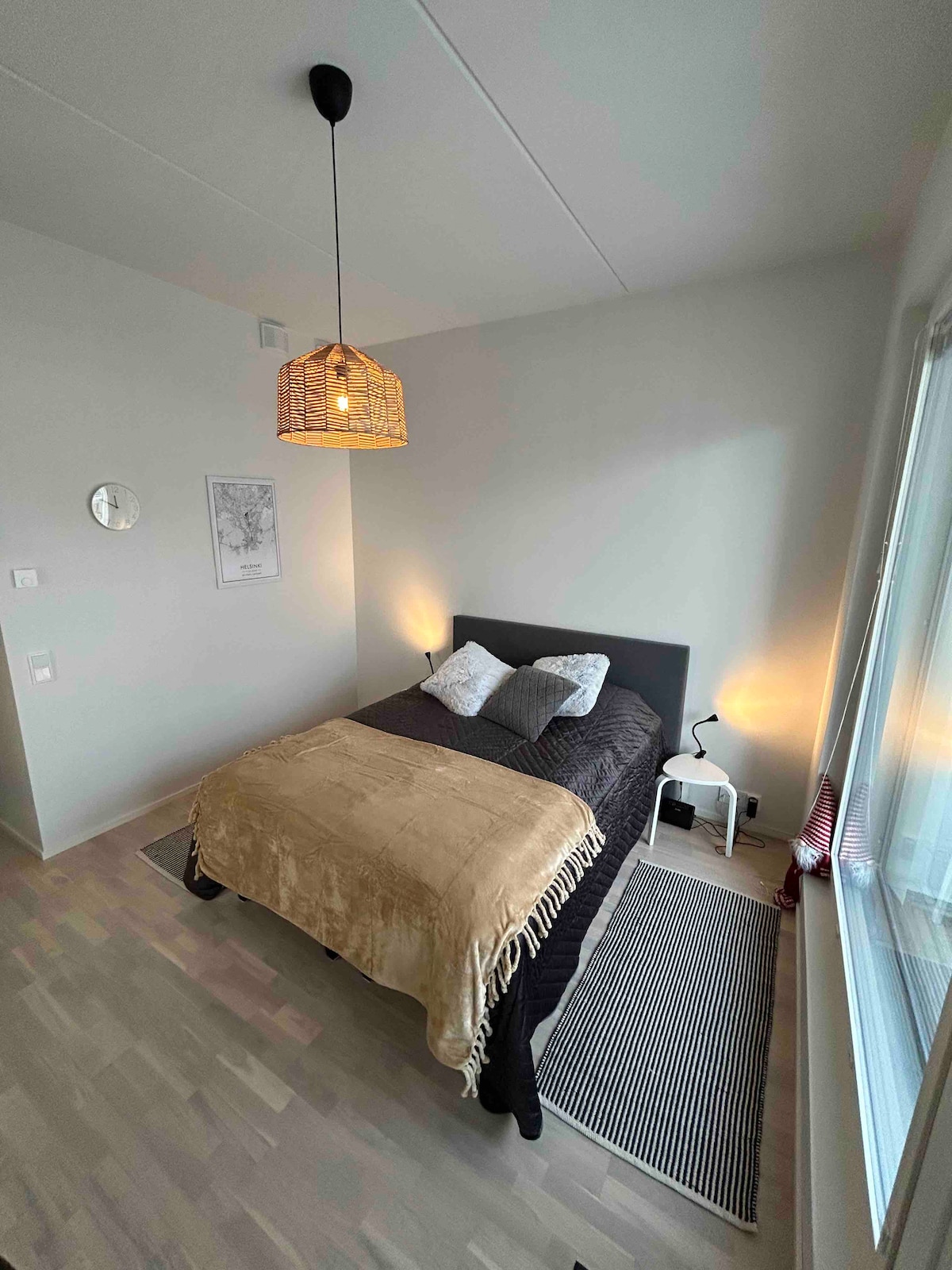Lokalizacja: Apartament jest idealnie położony w przytulnej i spokojnej okolicy w pobliżu rzeki, parków i kilku kluczowych atrakcji: - Stacja kolejowa Tikkurila (1,9 km) - Centrum handlowe Jumbo i Flamingo Spa (3,2 km) - Port lotniczy Helsinki (4,2 km). Bezpośrednie połączenie autobusowe z lotniskiem, przystanek autobusowy znajduje się 450 metrów od drzwi wejściowych. Ten sam autobus jedzie również na stację Tikkurila. Parking: w tej okolicy dostępny jest bezpłatny parking na ulicy. 1 duże łóżko, telewizor, miejsce do pracy, 2 dodatkowe łóżka. W pełni wyposażona kuchnia ze zmywarką.
