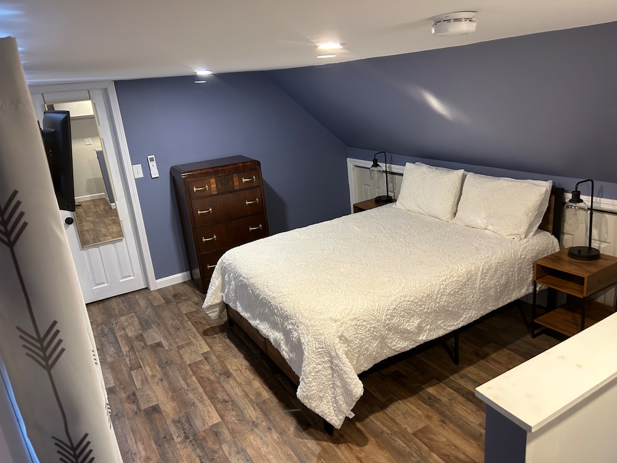 Nasz apartament z jedną sypialnią jest wielopoziomowy z dużą wspólną przestrzenią na zewnątrz. Zjedz posiłek na dużym tarasie lub zrelaksuj się przy ognisku. Spędź kilka dni na zakupach w Bangor, zwiedzając Park Narodowy Acadia, obserwatorium Penobscot i wiele innych cudów naszego wspaniałego stanu. W nocy zrelaksuj się w klimatyzacji i włącz swój ulubiony program. Zacznij każdy dzień od darmowej kawy. Nasz apartament ma wszystko, czego potrzebujesz, aby cieszyć się pobytem! *Schody na terenie obiektu są stosunkowo strome. Łazienka na pierwszym piętrze, sypialnia na drugim piętrze*