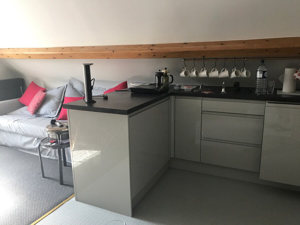 Jasny apartament typu loft zaledwie 10 minut spacerem od plaży z niebieską flagą w Alum Chine, z dużą otwartą częścią dzienną i nowo wyposażoną kuchnią. Położony w cichej i zielonej okolicy Bournemouth, można dostać się na plażę przez Alum Chine na końcu drogi, lub udać się w drugą stronę do wielu niezależnych sklepów, barów i restauracji w Westbourne (10-15 minut spacerem)