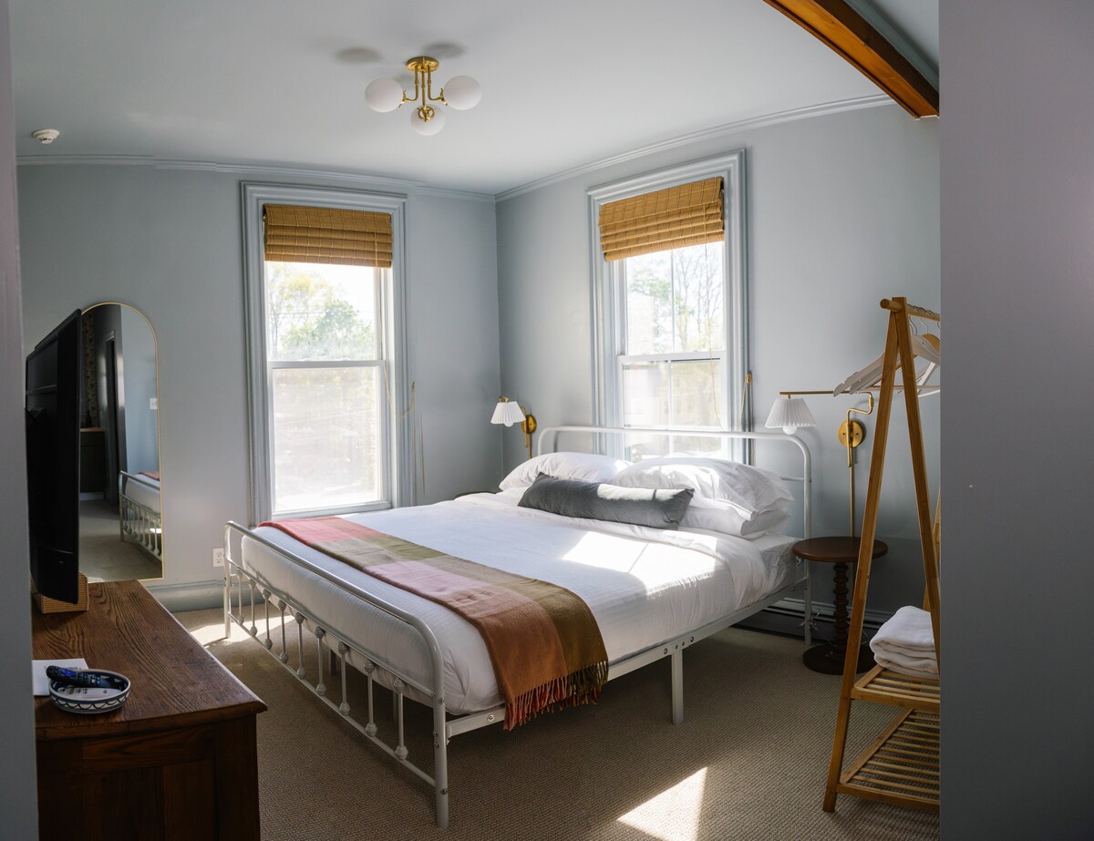Witamy w The Bracy Suite, przytulnym prywatnym pokoju na trzecim piętrze zabytkowego Ipswich Inn. Ten pokój jest nowo urządzony z wygodnym łóżkiem typu queen i przytulnym motywem domku, dzięki czemu poczujesz się jak w domu. W Twoim pokoju znajduje się łazienka z lokalnymi udogodnieniami butikowymi i telewizor Smart TV z Youtube TV (ponad 150 kanałów!). Smartlock zapewnia łatwy proces samodzielnego zameldowania. Ciesz się łatwym dostępem do sklepów, restauracji i kawiarni w centrum Ipswich, a także w odległości krótkiej przejażdżki do pięknej Crane's Beach!