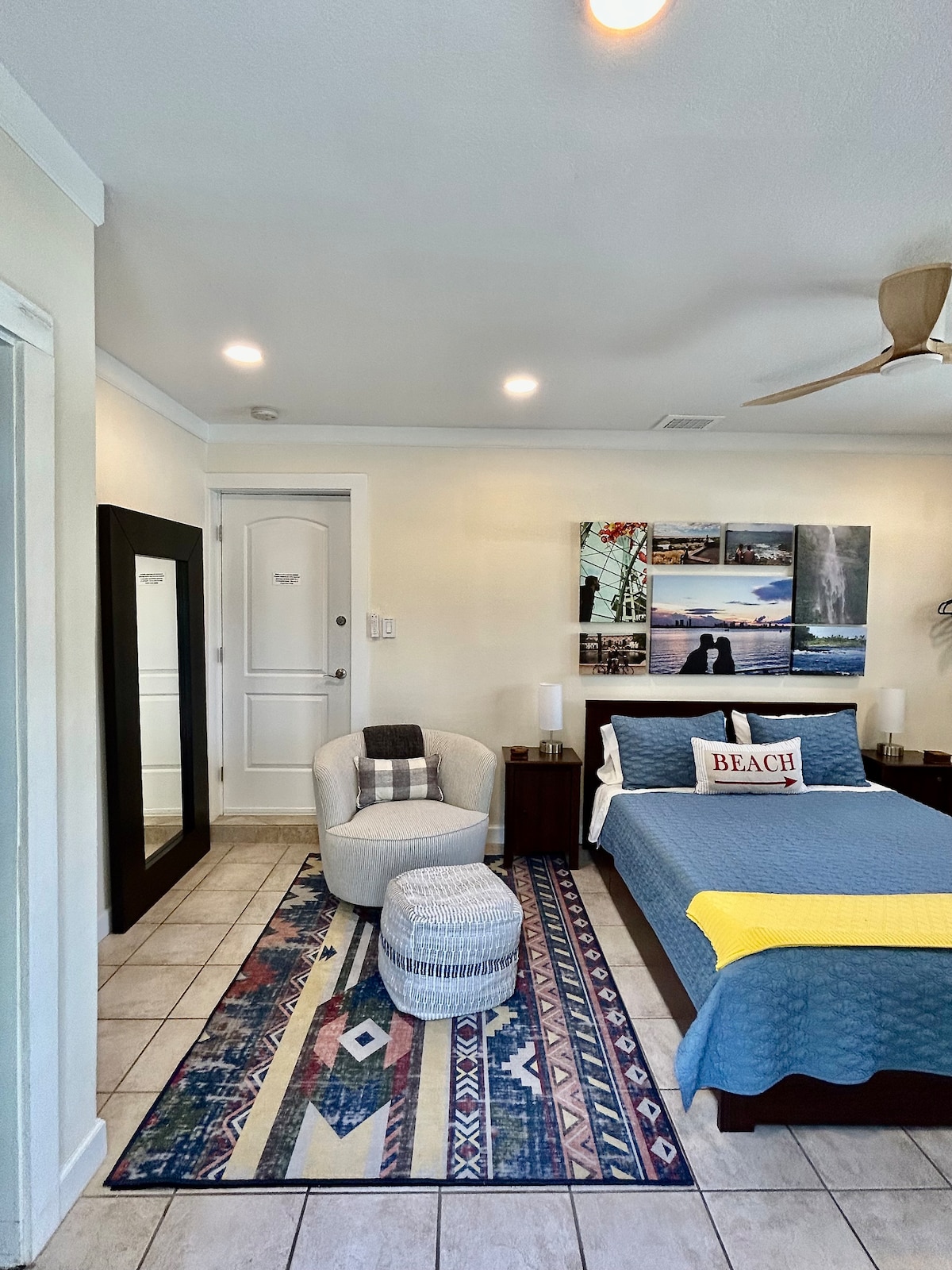 Luksusowe prywatne studio z prywatnym wejściem (440 stóp kwadratowych – może pomieścić 3 osoby/2 samochody) jest dołączone do naszego domu i 1,7 mili od plaży i sąsiaduje z Ft Lauderdale. Parkuj pod zadaszoną wiatą. 1 łóżko typu Queen (i 1 materac typu Queen Size), 1 wanna, aneks kuchenny, Wi-Fi światłowodowe, telewizor z płaskim ekranem (140 kanałów), okna Impact, ogromna szafa, wentylator/światło, klimatyzacja z pilotem, biurko, krzesło, składany stół do jedzenia z krzesłami, mała lodówka, kuchenka mikrofalowa, piekarnik tostowy, grill Foreman, kuchenka z płytą grzewczą, ekspres do kawy.