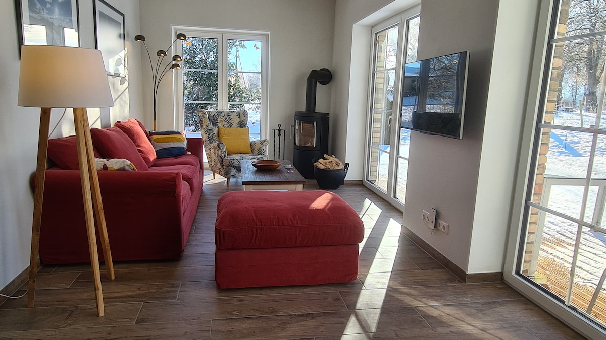 W powiatowym mieście Heide, 20 km od Morza Północnego, oferujemy część naszego domu jako kompletną, całkowicie oddzielną jednostkę mieszkalną o powierzchni około 120 m2 dla maks. 4 osoby. Apartament znajduje się na spokojnej ulicy, około 15 minut spacerem do centrum Heide/rynku i jest bardzo dogodny jako punkt wyjściowy do spacerów po wrzosowiskach, lasach i wycieczek rowerowych. Rowery można przechowywać, a samochód zaparkować bezpośrednio przed drzwiami wejściowymi.