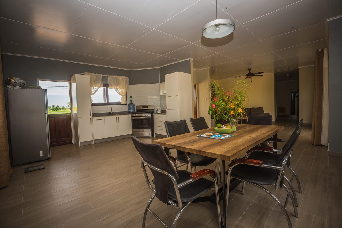 Welcome to our spacious and fully equipped home in Paramaribo North! Featuring 3 comfortable bedrooms (including a master with private bath), a well-stocked kitchen, cozy living area, terrace, laundry area with washer and dryer, and a private garage. Perfect for families, small groups, or business travelers. Located near shops and the popular Sunday Market, and just 10 minutes from downtown. Comfort, peace, and convenience—all in one perfect stay!