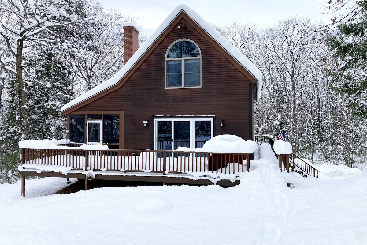 Prywatna chata nad jeziorem w lasach niedaleko Sunday River