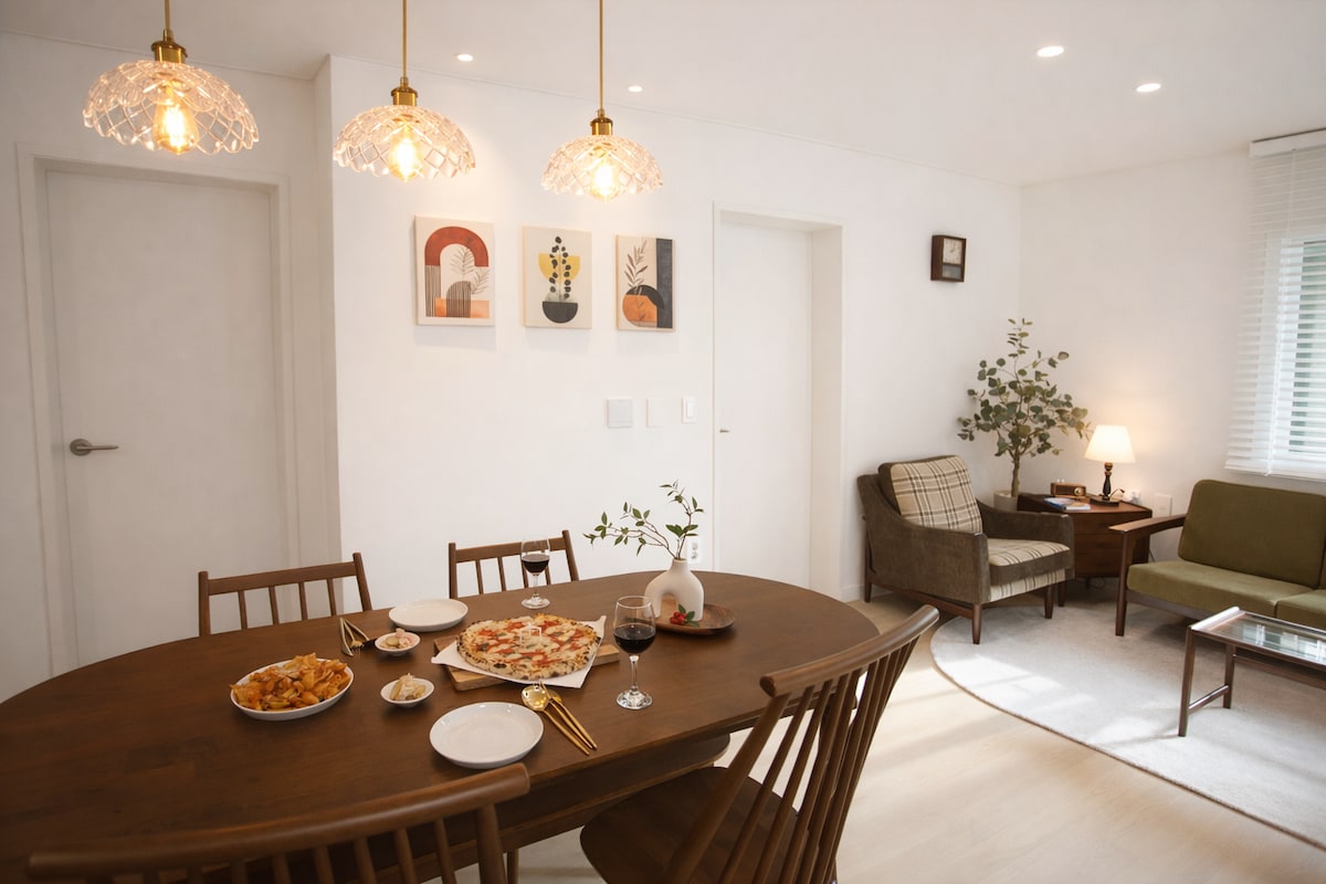 - Dwupiętrowy dom z tarasem na dachu o powierzchni 20 m² położony w centrum miasta; dzielnica Hongdae, Mangwon i Hapjeong - Niedawno odnowiony z zabytkowymi duńskimi meblami - Położony w dzielnicy mieszkalnej, zaledwie kilka kroków od dzielnic uwielbianych przez mieszkańców, takich jak Hongdae, targ Mangwon, Yeonnam i rzeka Han - 24-godzinne sklepy, małe kawiarnie i restauracje są tuż za rogiem * Imprezy są niedozwolone * 상업촬영 사전협의 * Natychmiastowe wymeldowanie w przypadku przekroczenia liczby gości * naprawiono ciśnienie wody w toalecie