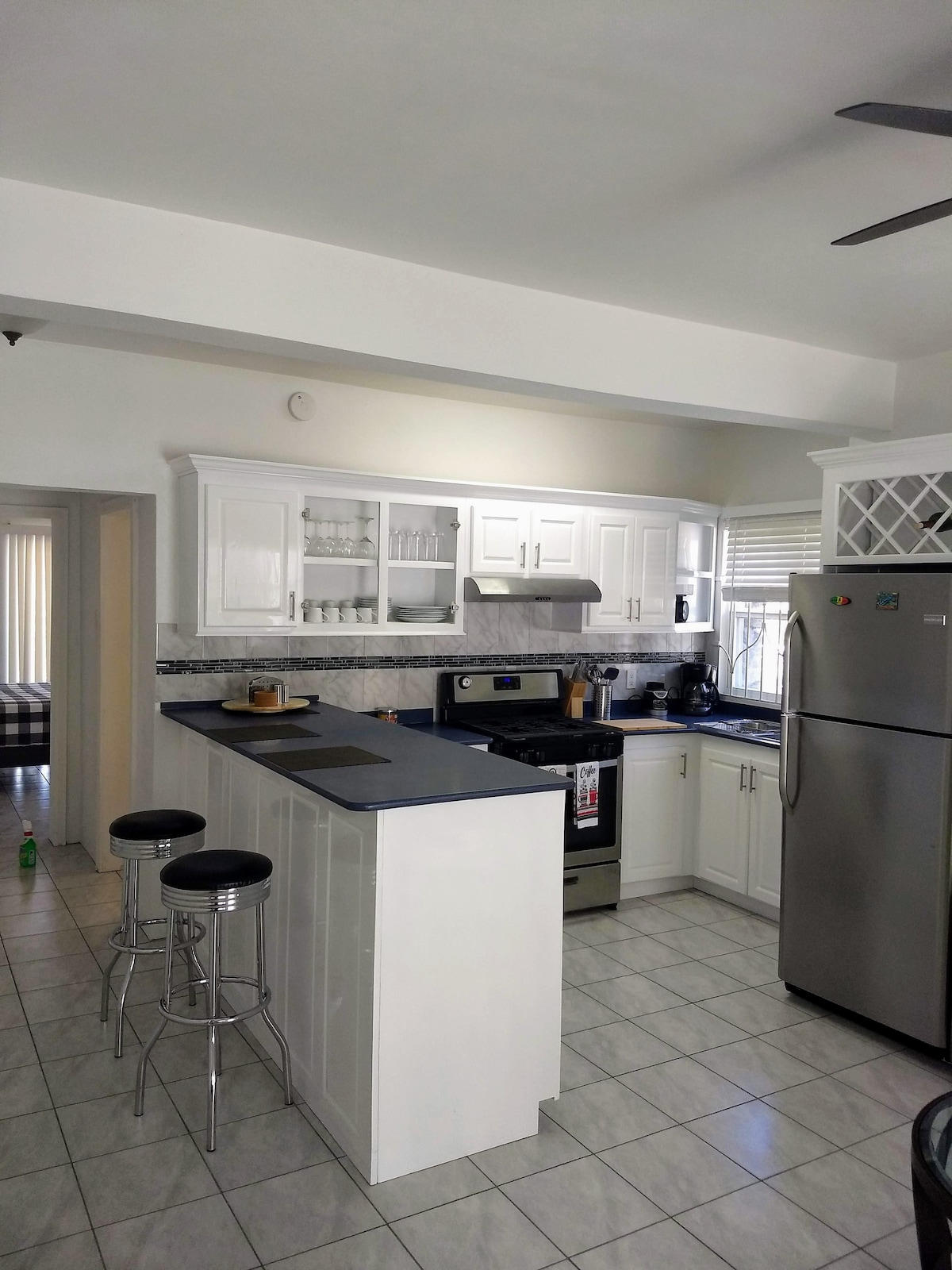 Miejsce na spokojny pobyt z rodziną i znajomymi. Dom znajduje się w spokojnej okolicy, kilka minut od sklepów, restauracji i pięknych plaż. To idealne miejsce, aby się zrelaksować i nacieszyć się słońcem lub wrócić do domu po odkryciu wszystkiego, co wyspa ma do zaoferowania. Dom posiada dużą, w pełni wyposażoną kuchnię z widokiem na basen i ocean. Basen ma płytki kraniec z wbudowanymi siedzeniami do relaksu i głęboki kraniec do skakania i zabawy.