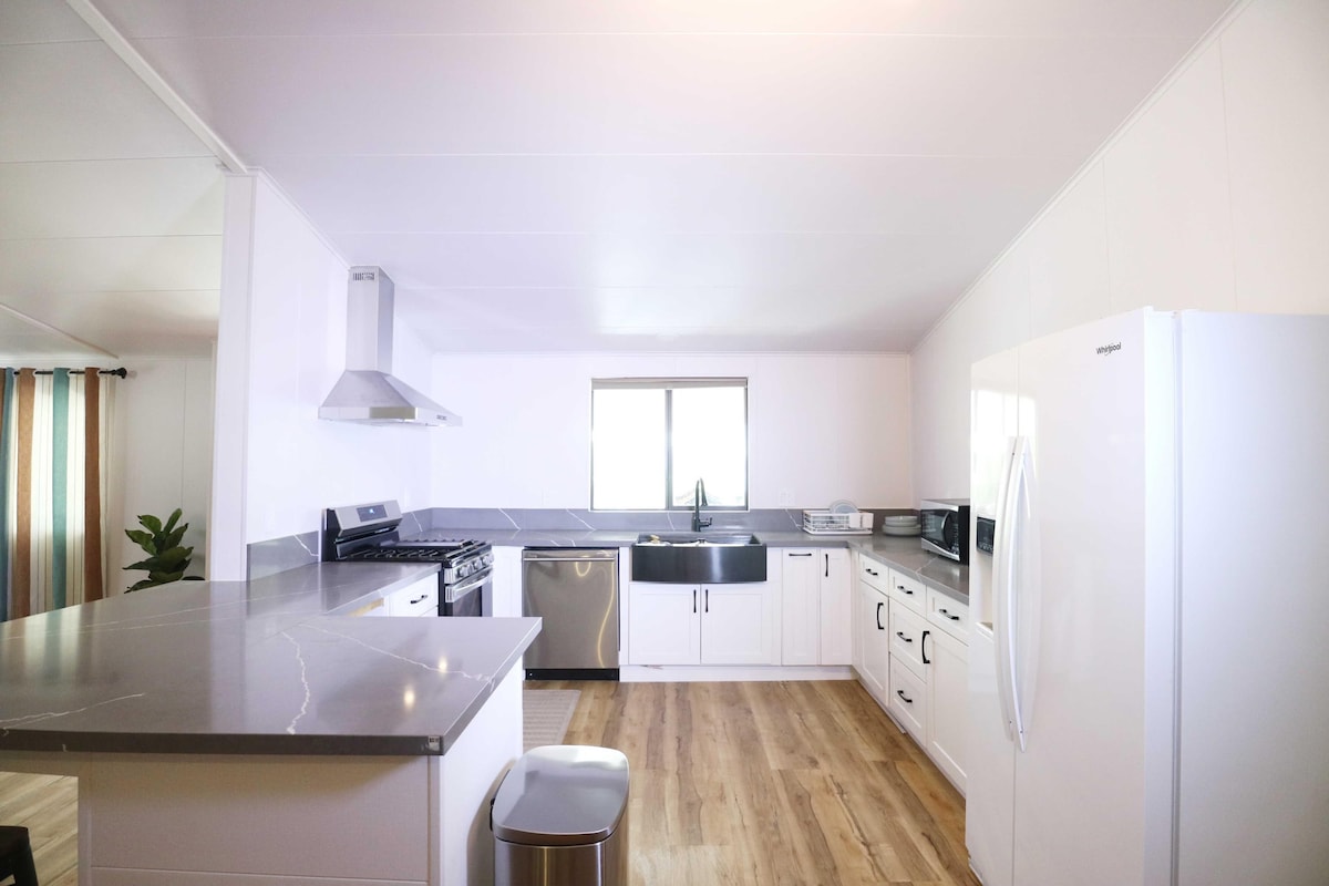 Relaks czeka na Ciebie w tym domu, który jest w 100% poza siecią. Obserwuj wschody i zachody słońca z prywatnego tarasu wyposażonego w leżaki. Podziwiaj gwiazdy, korzystając z prysznica na świeżym powietrzu, ogrzej się przy ognisku lub rozsiądź się na kanapie i obejrzyj ulubione filmy na żądanie w tym nowoczesnym domu na pustyni. Ciesz się spokojem, który oferuje 5 akrów ziemi, zaledwie kilka minut jazdy od pięknego Parku Narodowego Joshua Tree i okolitych miast. Ciesz się świeżym powietrzem i wszystkimi domowymi udogodnieniami.