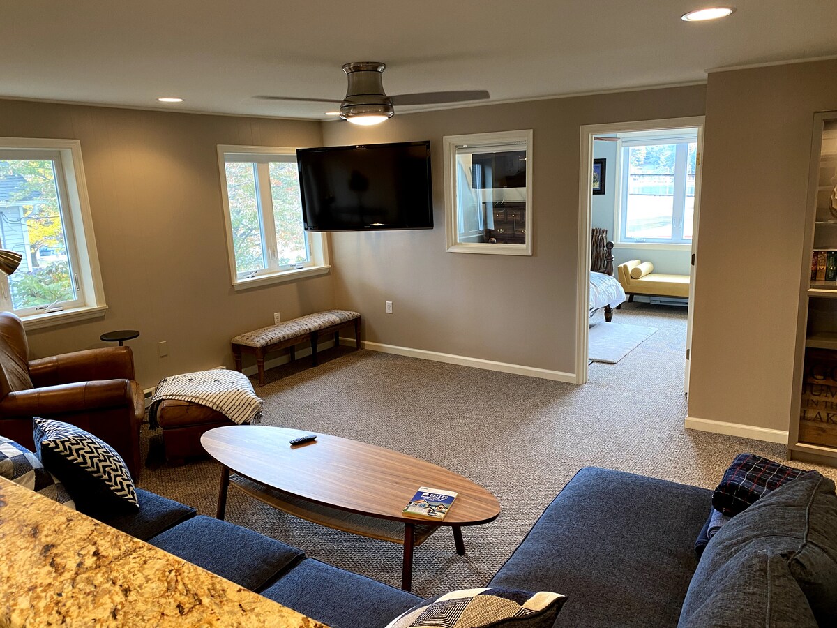 Otwarta kuchnia/salon z wysuwaną kanapą typu queen, położona tuż przy 81, w pobliżu Montage Mountain i PNC Field. To wyjątkowe miejsce ma własny styl, z przestrzenią biurową i mnóstwem miejsca w szafie. Wygodne łóżko typu king z puszystymi ręcznikami, cała pościel zapewniona. Znajduje się nad studiem jogi, sklepem z pamiątkami i zdrową kawiarnią. Rozkładana kanapa typu queen i łóżeczko dziecięce.