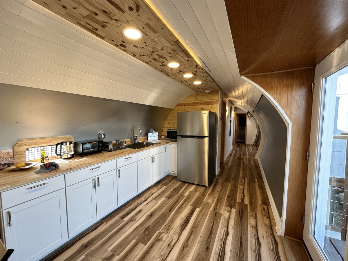 Our tiny home is elegant and simple, hand crafted for privacy with close to town comforts, yet off the beaten path. This cozy paradise is tucked away on a private drive boasting some of the best views of the Wasilla Range. The home is crafted to provide you with over 420 Sq Feet of carefully planned space offering a fully functional kitchen, a beautiful bathroom and a custom tiled shower. It is truly magical to soak outdoors under the night sky in the privacy of your own hot tub.