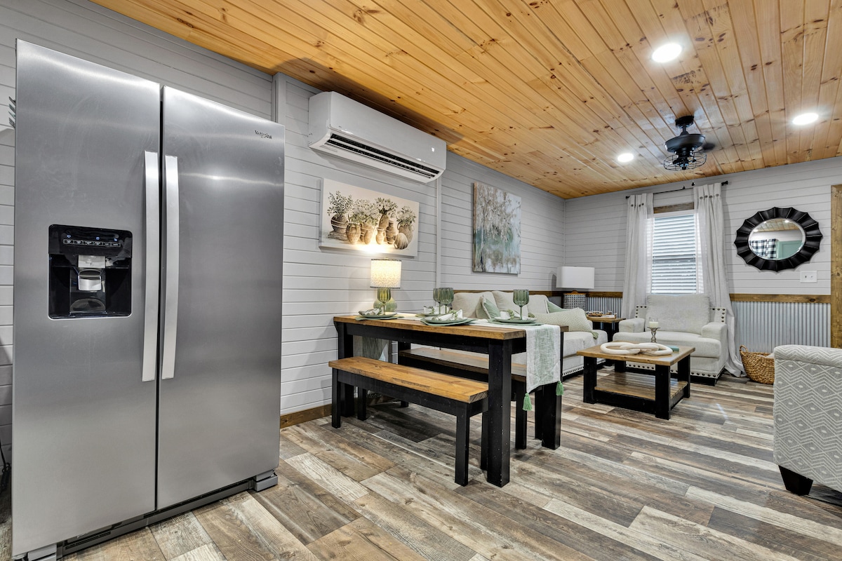 Uroczy mały dom za głównym domem na podwórku; cicha okolica w sercu Tupelo. Jedna sypialnia/loft, pełna łazienka z małą kuchnią. Salon z telewizorem. Wypij kawę na ganku przy stole śniadaniowym. Ciesz się wieczorem przy ognisku lub na tarasie. Wiele restauracji i sklepów w pobliżu lub spacer po centrum miasta oddalonym o zaledwie 5 minut. Zobacz miejsce narodzin Elvisa i muzeum 10 minut drogi lub ciesz się spacerem po parku! Wszystko w promieniu 10 mil!