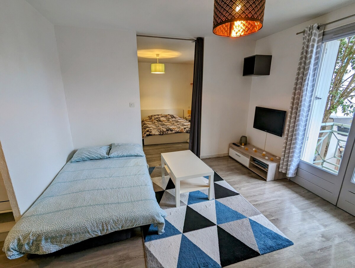 Zapraszamy na weekend, wakacje lub inny pobyt w tym odnowionym mieszkaniu. Znajduje się w pobliżu wszystkich udogodnień, 10 minut spacerem od centrum miasta i 30 minut komunikacją miejską od centrum Tuluzy. Dzięki wyposażeniu i komfortowi poczujesz się jak w domu. Ponadto znajduje się w małej, spokojnej rezydencji w pobliżu parku, który zachęca do spacerów. Do zobaczenia