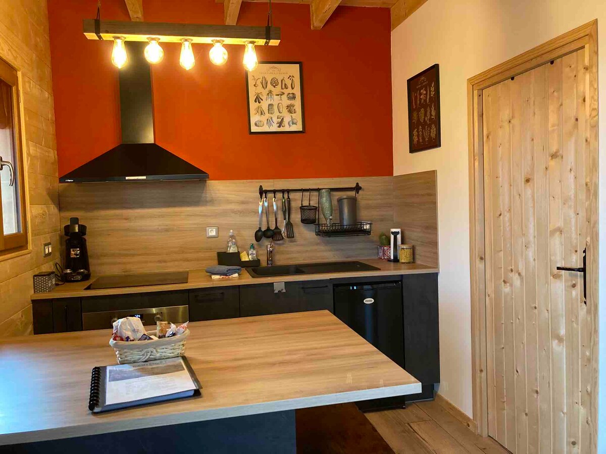 Plongez dans l'univers d'un refuge de berger alpin en couple. Votre refuge entièrement en bois est composé d'une salle d'eau avec douche, lavabo, wc, d'un espace nuit avec un lit 140X200. Votre accès directement à votre terrasse avec vue sur la nature et votre jacuzzi privé vons feront passé de bons moments en amoureux et "on ne sait jamais sur un malentendu..." Les linges de toilettes sont fournis et le lit sera fait à votre arrivée.
