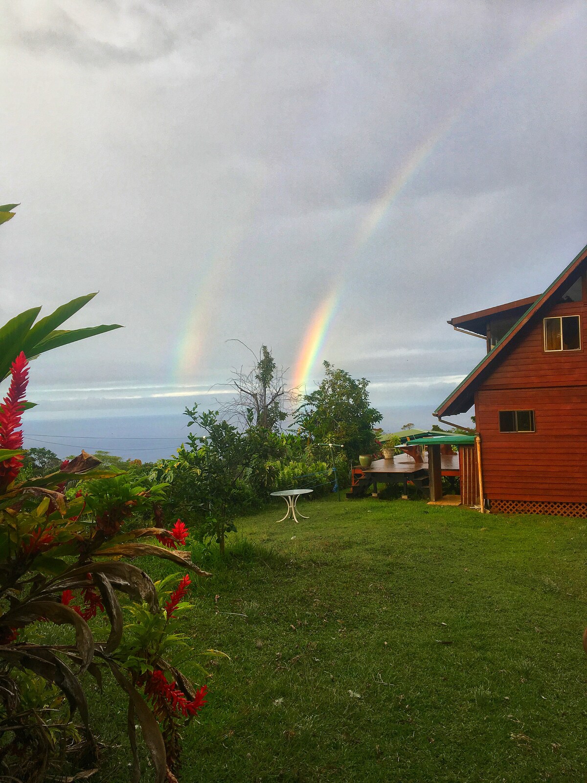 The Log Cabin is located in lush and peaceful Ahualoa, an 8 minute drive up the mountain from historic Honokaa town. The Log Cabin is a great setting for families, groups, weddings or other special events. At the Log Cabin, you can enjoy a stroll around the yard, bonding time around the firepit, or a nature walk in the beautiful surroundings.