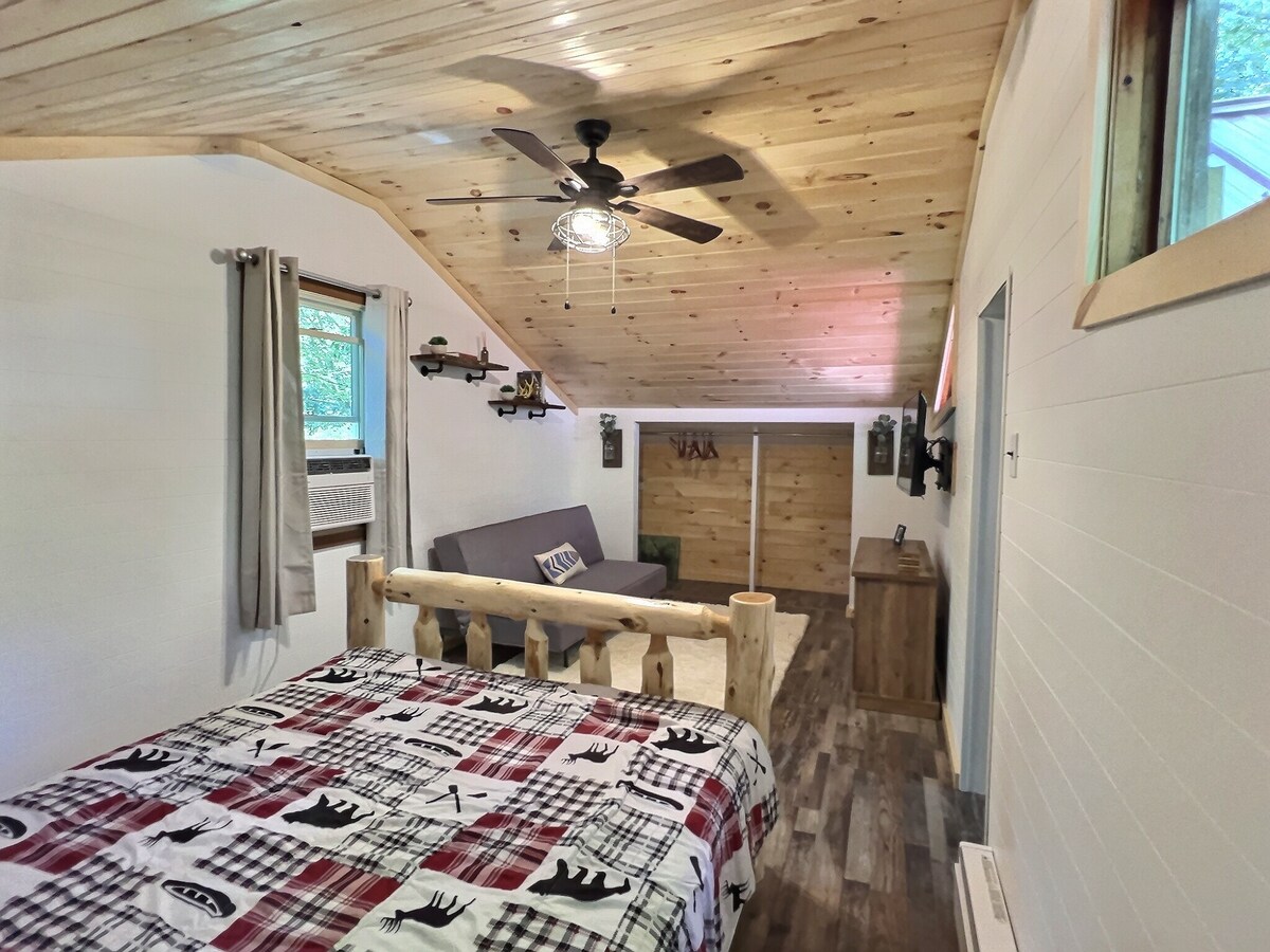 Witamy w The Refuge! Ten odnowiony domek z 3 sypialniami i 2 łazienkami jest idealnym miejscem spotkań rodzinnych o każdej porze roku. Ogromny pokój gier wyposażony w stół bilardowy, ping pong, piłkarzyki i wygodne siedzenia z telewizorem. Prywatna, przestronna nieruchomość z hamakami, paleniskiem, tarasem z przodu i z tyłu ze stołem jadalnym. Okrągły podjazd jest wygodny dla samochodów i łodzi. Dogodna lokalizacja z publiczną przystanią dla łodzi w odległości mniejszej niż 1,6 km. Wróć do domu z wygodnymi łóżkami, ciepłym ogniem, wyposażoną kuchnią, pralnią i miejscem do pracy.