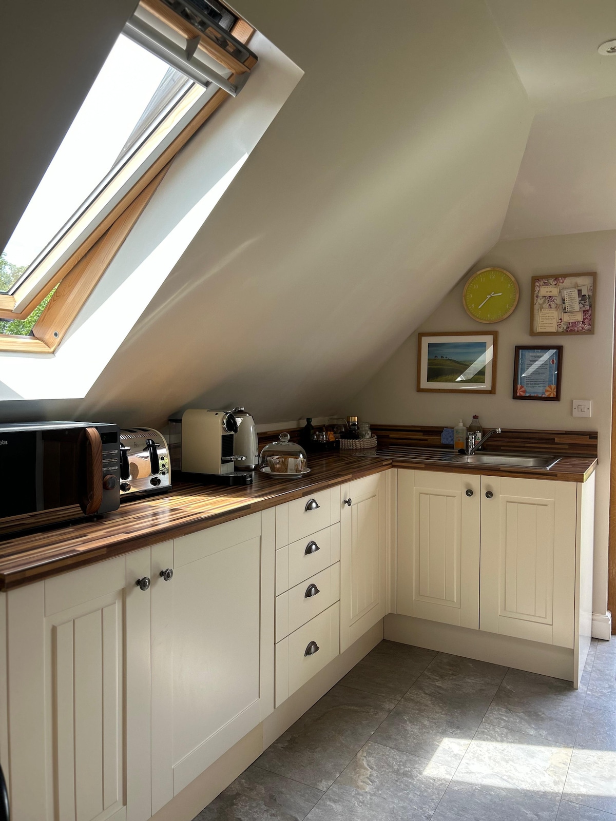 Hideaway znajduje się na wsi Wiltshire, w małym gospodarstwie o powierzchni czterech akrów w pobliżu podnóża Roundway Down. Jest to samodzielne studio na 1. piętrze, sąsiadujące z posiadłością gospodarzy, otoczone owcami, osłami, psami, kurczakami, kucykiem i dużym żółwie afrykańskim. Można zorganizować możliwość nakarmienia jagniąt wiosną. *Goście mogą korzystać z basenu rodzinnego w miesiącach letnich (od czerwca do września), a także z sauny, siłowni i zajęć jogi na miejscu (organizowanych po dokonaniu rezerwacji).
