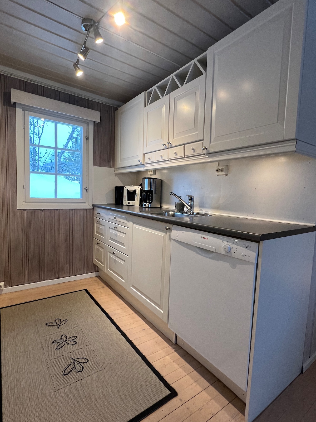 Our garden house has a plain Norwegian cabin standard with everything you need for making simple meals. Some basic food supplies will be available. As we have no running water in the garden house, we have placed a water dispenser in the kitchen area. Your bathroom, with floor heating and shower, is situated right next door, in the main house. The garden house has its own terrace, with access to the garden.