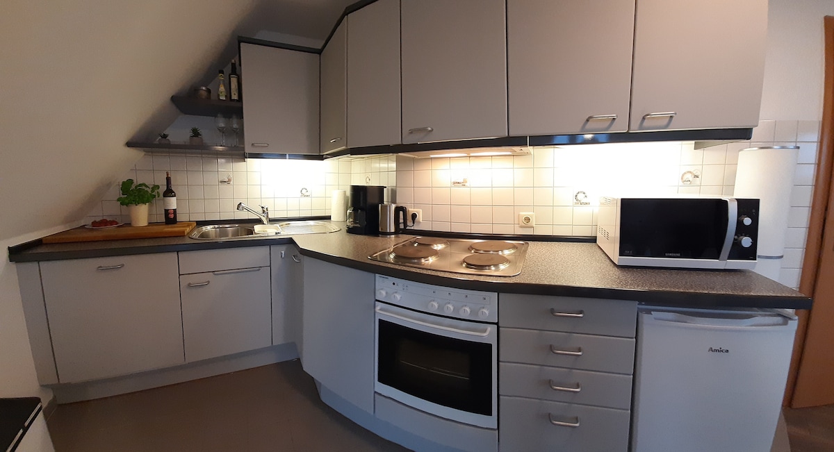 Witamy w Apartamencie II: Mieszkanie znajduje się ok. 5 minut spacerem od wału Morza Północnego i laguny rodzinnej. W nowocześnie urządzonym mieszkaniu na poddaszu z przynależnym do niego południowym tarasem można spędzić najpiękniejszy czas w roku. Salon z telewizorem, rozkładaną sofą i jadalnią, nowa kuchnia ze zmywarką, a także sypialnia z garderobą, telewizorem, łóżkiem kontynentalnym i dziecięcym, a także łazienka z prysznicem i toaletą.
