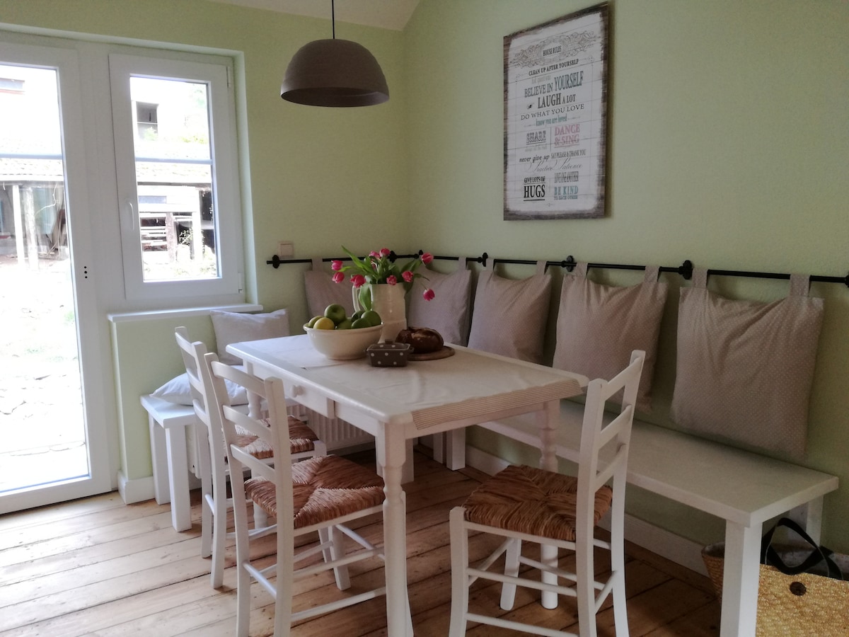 Ur-laube pozwala Ci na wakacje od technologii i stresu. Gotuj na kuchennej wiedźmie na drewnianym ogniu i przygotuj ciepłą wodę w piecu kąpielowym. Żyj na świeżym powietrzu i zdrzemnij się na leżaku pod dębem lub lub udaj się do pobliskiego odkrytego basenu. Urok życia na wsi nie polega na doskonałości, lecz na improwizacji. Nasze miejsce jest dogodne dla turystów pieszych i rowerzystów. Miłośnicy ogrodów również znajdą u nas coś dla siebie. Ekologiczne, zrównoważone, organiczne i wegańskie