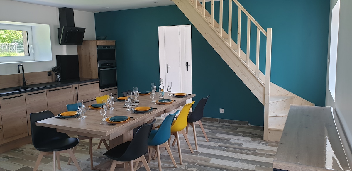 Jesteś we właściwym miejscu, jeśli chcesz połączyć się z morzem i naturą w magicznym regionie Cotentin. Dom Marie-Line: Jest to „nietypowy dom na wyspie” położony 500 m od plaży Sciotot, z zapierającym dech w piersiach widokiem na zachód, który pozwala cieszyć się wspaniałymi zachodami słońca, oraz dużym, wyposażonym tarasem. Znajdziesz tu wszelkie udogodnienia, które pozwolą Ci spędzić tu czas zarówno latem, jak i zimą, a także pracować zdalnie z widokiem na morze, korzystając z sieci Wi-Fi.